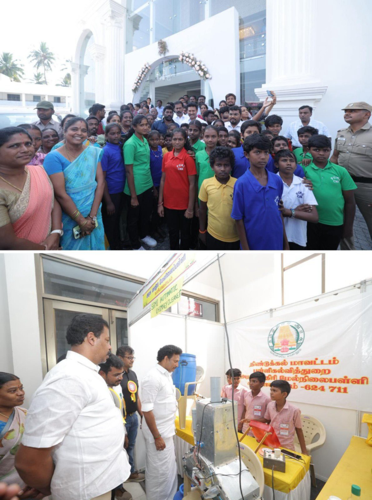 இந்த அறிவியல் கண்காட்சியை பள்ளிக்கல்வித்துறை அமைச்சர் அன்பில் மகேஸ் பொய்யாமொழி அவர்கள் நேரில் பார்வையிட்டு, மாணவர்கள் உருவாக்கிய அறிவியல் மாதிரிகள் மற்றும் புதுமையான கண்டுபிடிப்புகளை ஆர்வத்துடன் கேட்டறிந்தார். அப்போது அவர் பேசுகையில், “அறிவியல் அனைவருக்குமானதாக இருக்க வேண்டும். மாணவச் செல்வங்களும் இளைஞர்களும் எளிய மக்களுக்கு பயன்படும் வகையிலான அறிவியல் கண்டுபிடிப்புகளை உருவாக்க வேண்டும்” என வலியுறுத்தினார்.